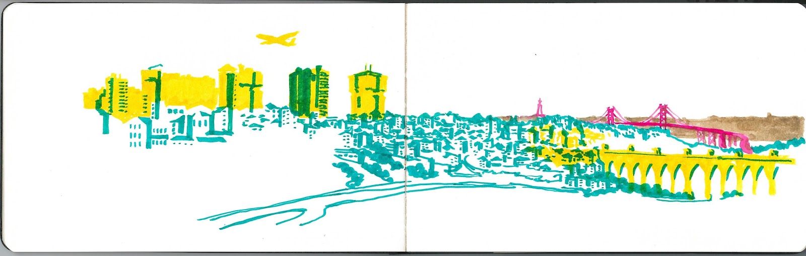 Show the students what is drawing on a sketchbook, as a tool to keep memories, either through quick drawingas or through drawings that take more time, when is is possible to stay longer and truly apreciate and record the moment.