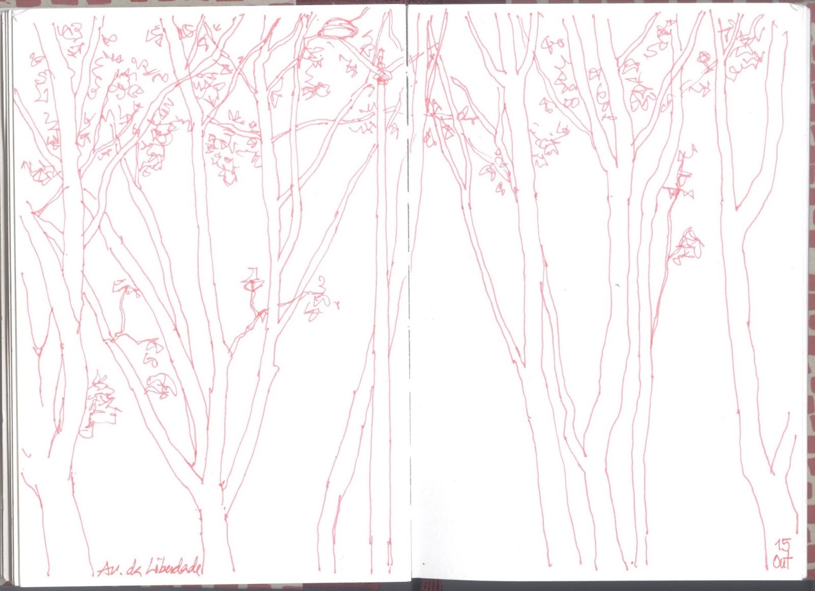 Uma das coisas boas de desenhar é que os momentos continuam a viver nos cadernos, nós podemos voltar a eles quantas vezes quisermos. As pessoas, os cheiros, os sons, as conversas, o frio, o calor, a dor no ombro, este ou aquele detalhe, o nosso estado de espírito. Essa magia é inexplicável,