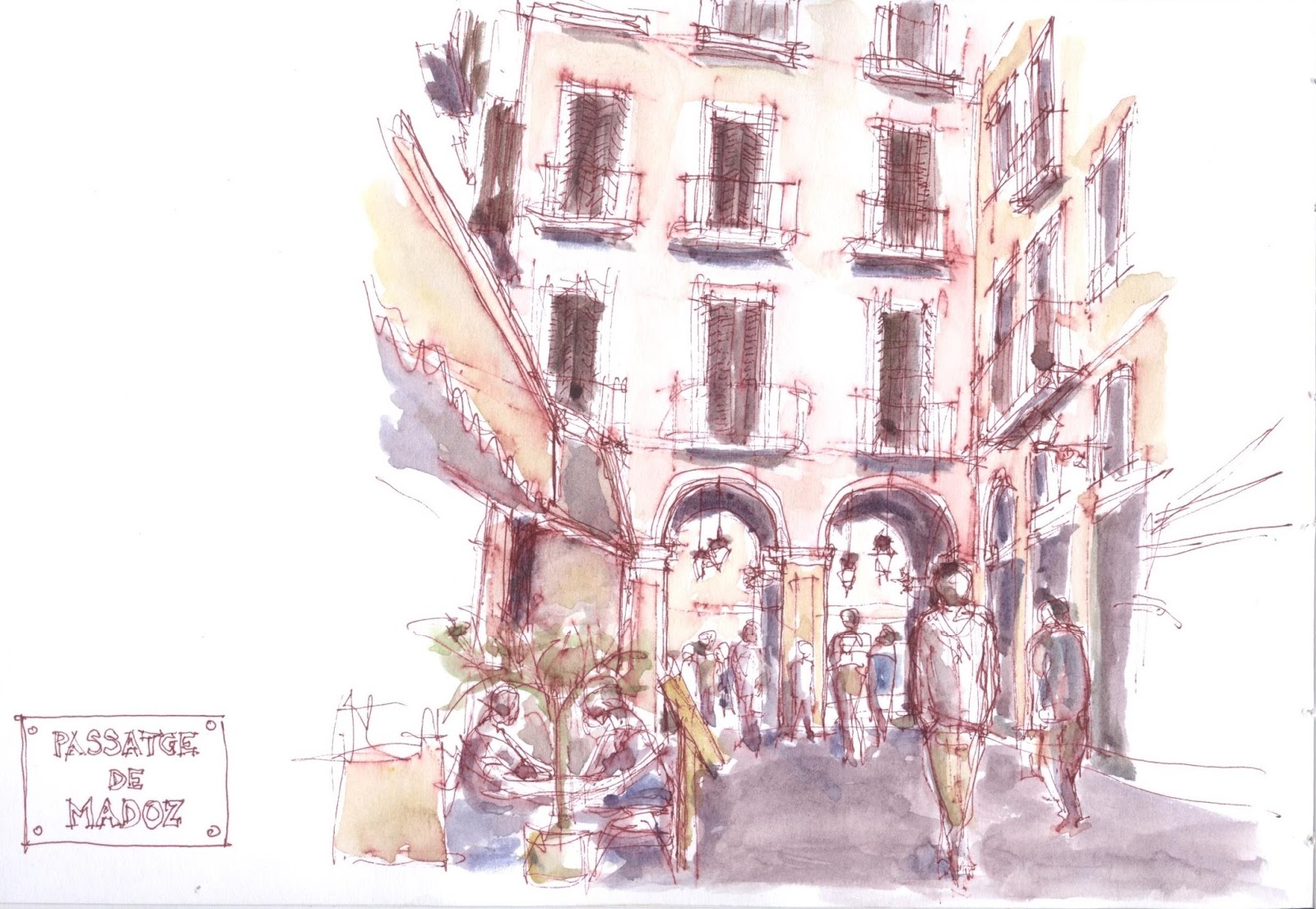 Ao fim da tarde de sábado, já de regresso ao Hotel, passámos primeiro por uma exposição chamada Sketching Barcelona, com desenhos lindos de nomes conhecidos (até comprei um livro), e depois parámos a tomar uma bebida para refrescar numa esplanada na Passatge de Madoz, que fica junto à Plaça Reial .