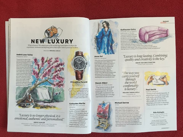 Os meus desenhos na AD Middle East, a ilustrar um artigo, "New Luxury", sobre o que é hoje em dia o conceito do Luxo para algumas pessoas, tais como André Leon Talley, Paul Smith, Anna Sui, Michael Zavros, e outros.