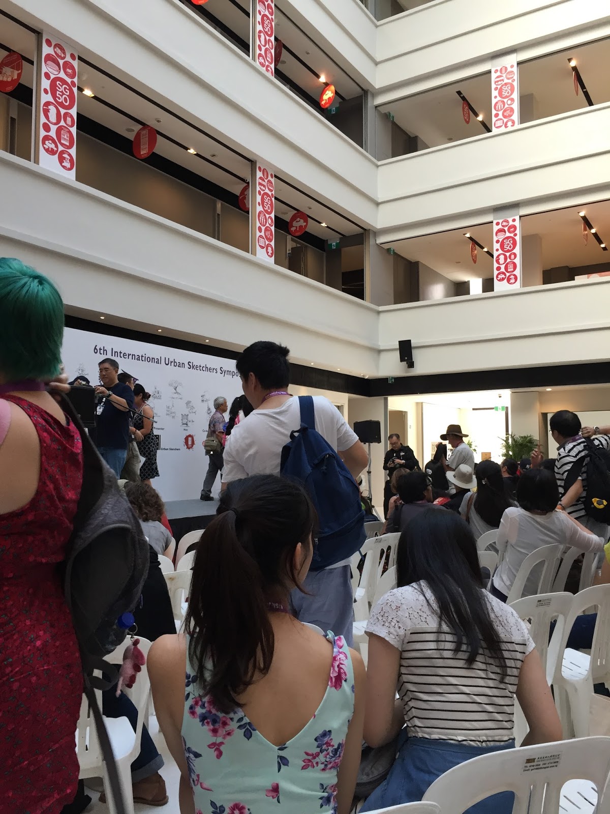 À tarde, antes do sketchcrawl final, tempo de fotos! Don Low, Paul Wang, Gabi Campanario, Norberto Dorantes, Nina Johansson. Conheci a Simone Rydiard, de cujo trabalho gosto muito, e que será a anfitriã de Manchester.