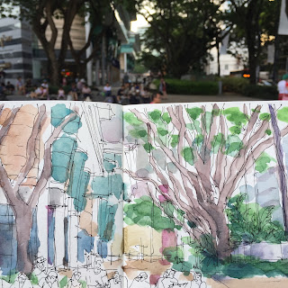 Já no Sketchcrawl, na converseta com a Ketta e a receber aquela energia fabulosa que é estar num grande grupo a desenhar.